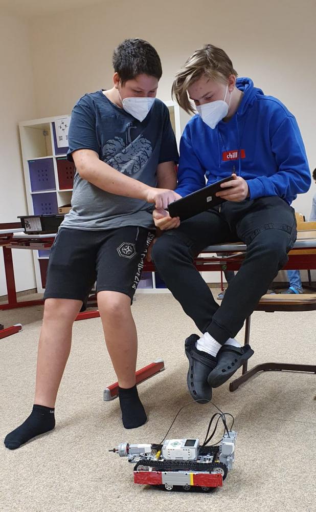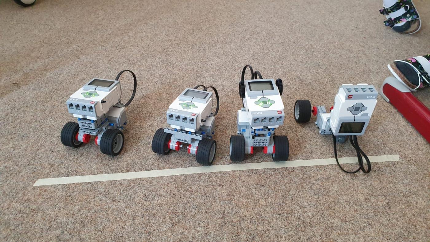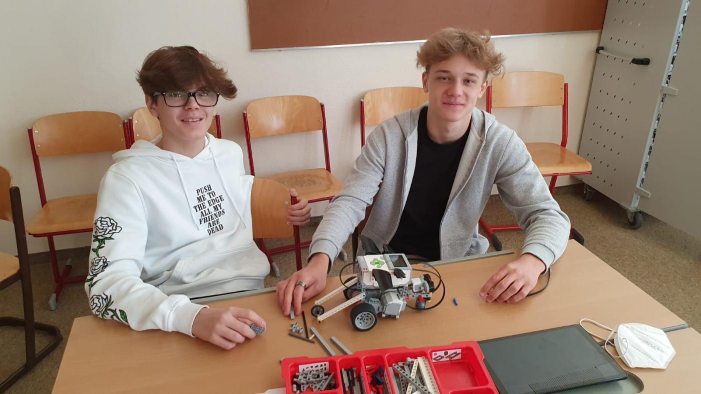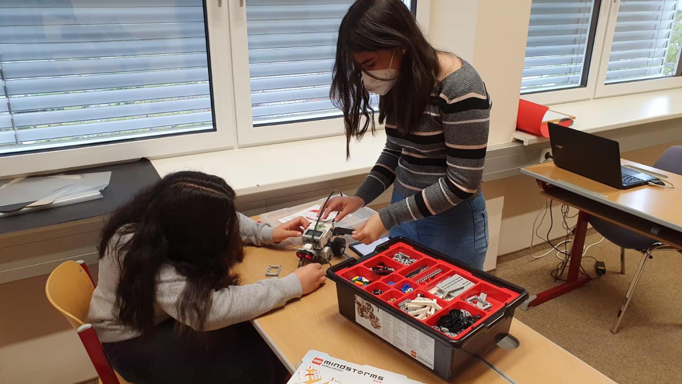 Kindheitserinnerungen wurden in den vergangenen Wochen bei den Schülerinnen und Schülern der 4b wach. Im Informatikunterricht konnten sie nämlich ihre Legobaukünste unter Beweis stellen. In kleinen Gruppen bauten sie einen fahrbaren Roboter aus der Lego-Mindstorm-Reihe, den sie im Anschluss selbst programmierten. Dabei konnten sie den Roboter Töne abspielen lassen, ihn nach ihren Vorstellungen in der Klasse bewegen und ihn mithilfe von Tast- und Ultraschallsensoren vor Zusammenstößen bewahren. Als Spezialaufgabe mussten die Kinder den Roboter auf eine vorgegebene Rennstrecke hin programmieren. Der schnellste Roboter gewann. Somit konnten unsere Schülerinnen und Schüler auf spielerische Art und Weise zu angehenden Programmierprofis werden.